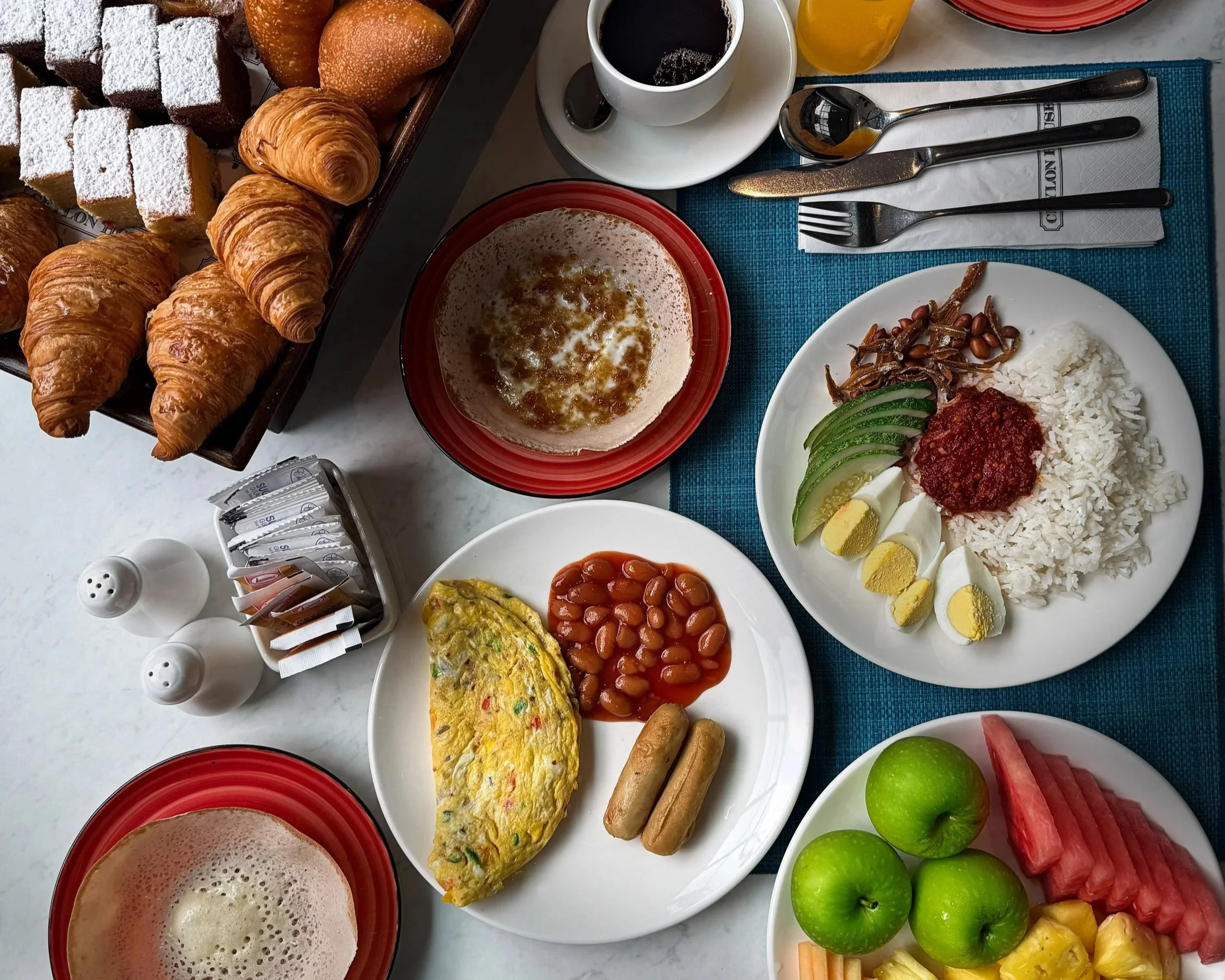 Indulge in a hearty spread of Asian & Continental favourites, freshly baked pastries, and a live station serving authentic Sri Lankan Appam made hot and fluffy on the spot.